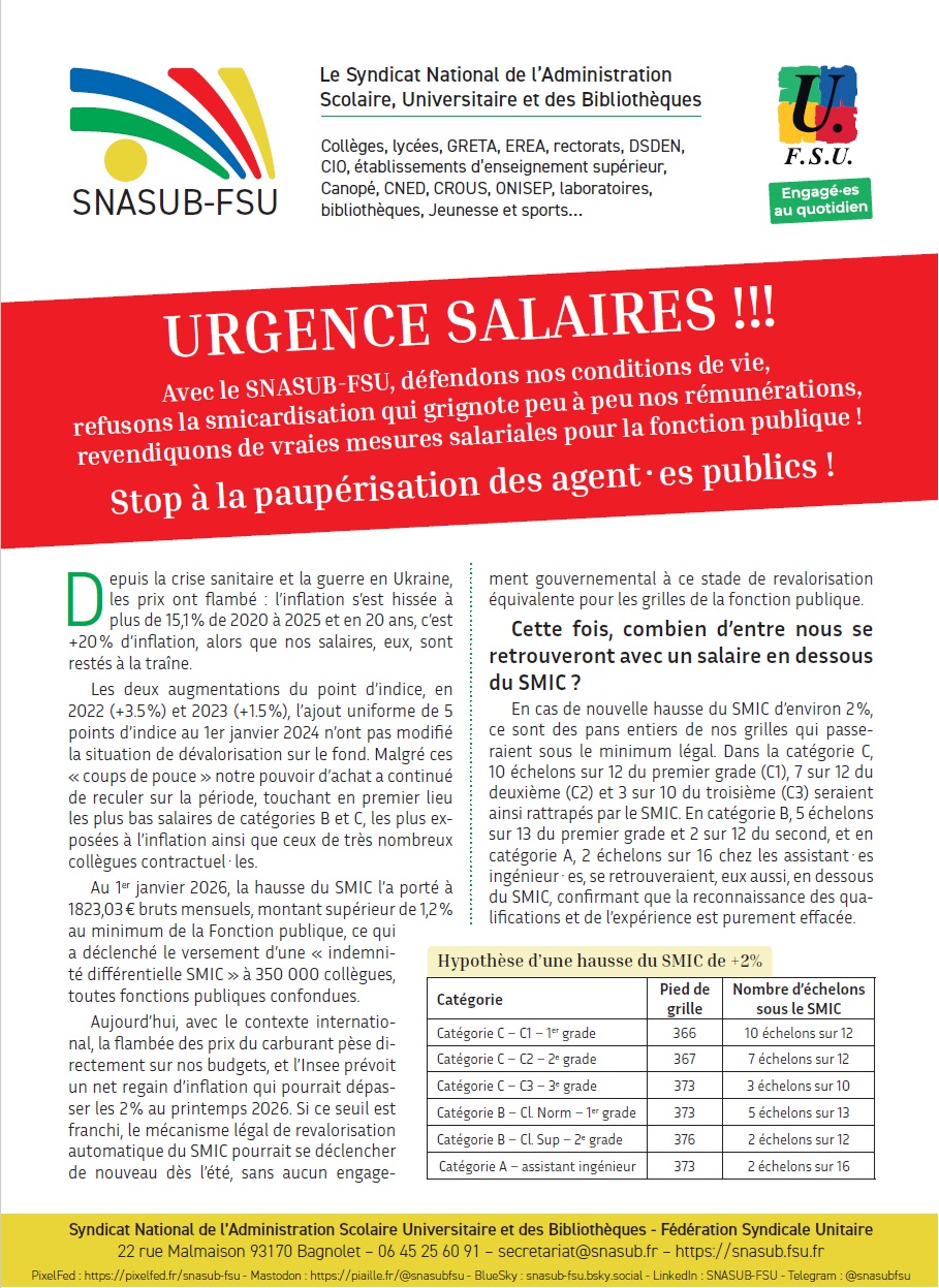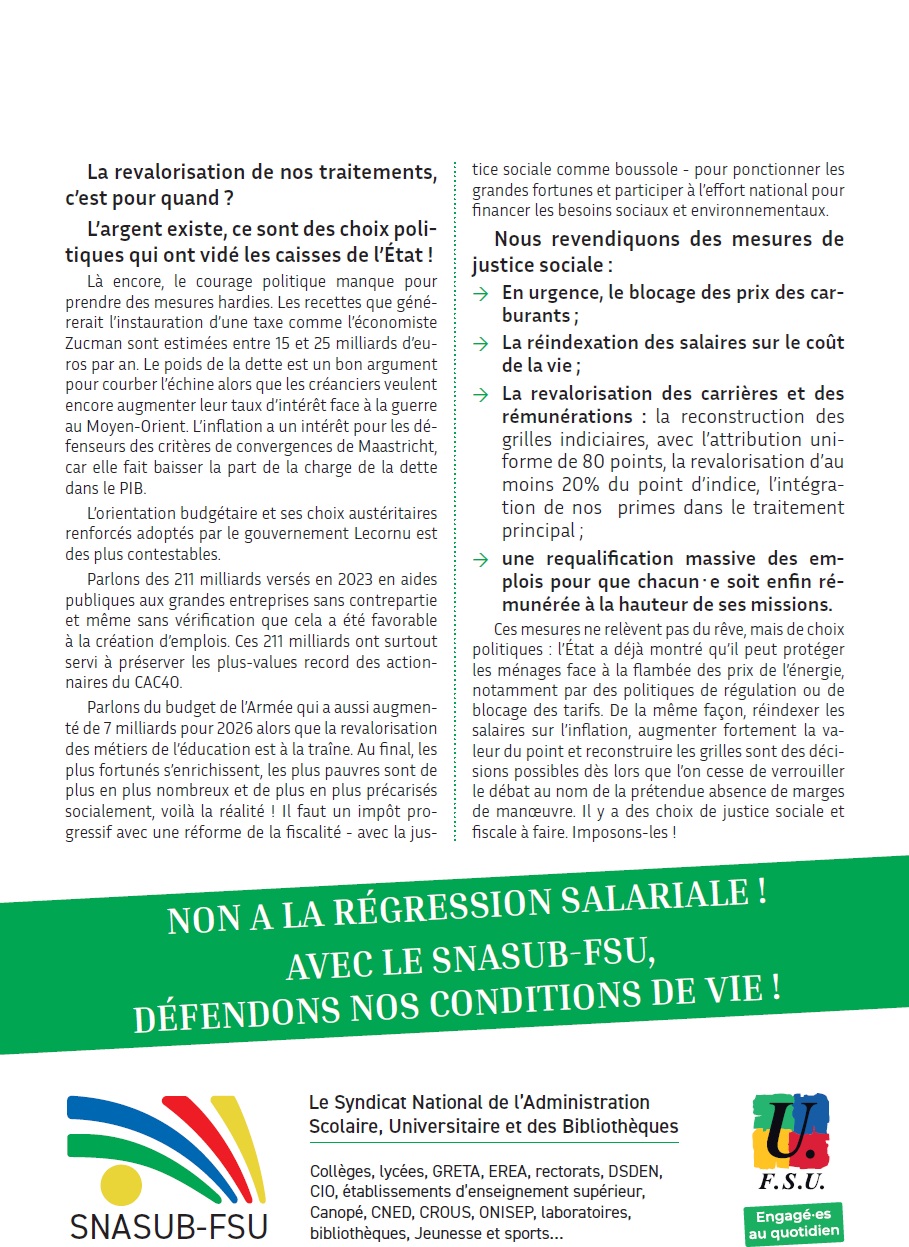 Avec le SNASUB-FSU, défendons nos conditions de vie, refusons la smicardisation qui grignote peu à...