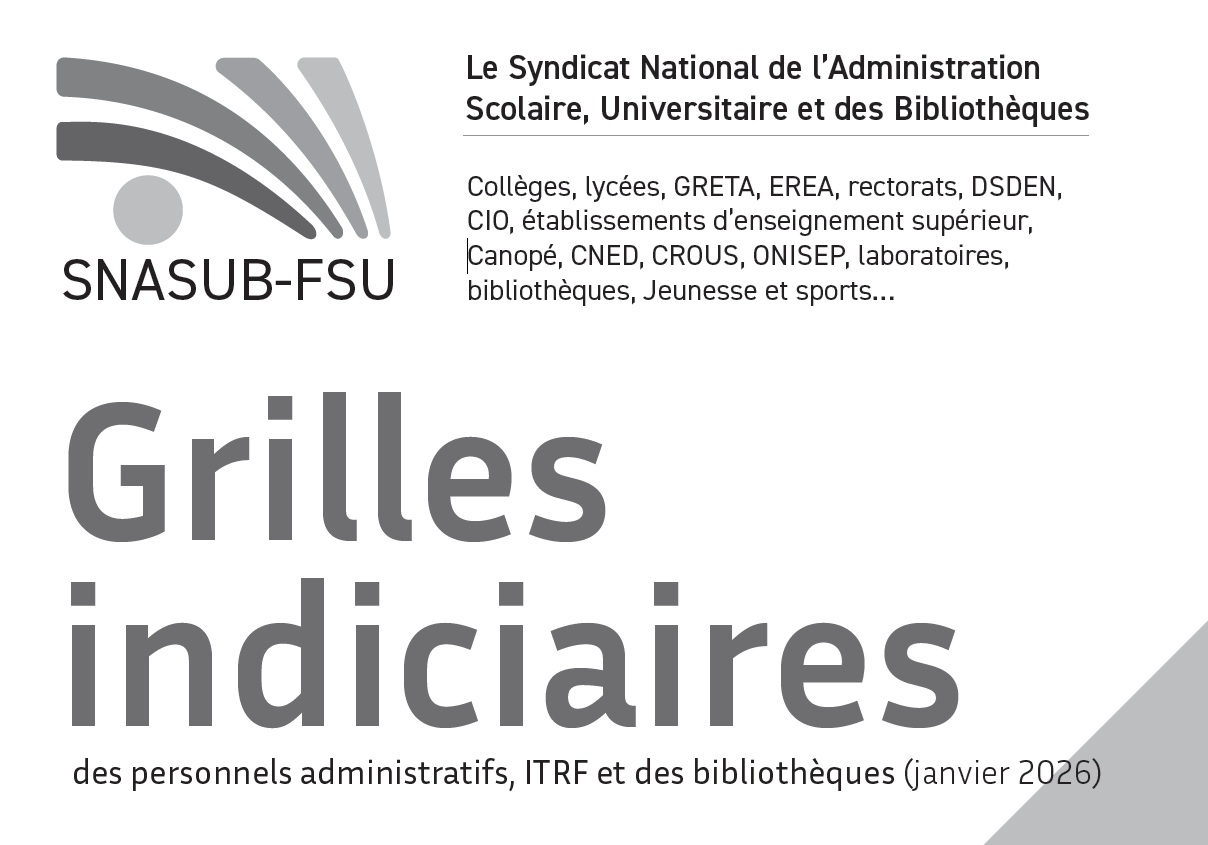 Vous trouverez ici les grilles indiciaires pour la catégorie C (ADJAENES, ATRF, Magasinier·e), catégorie B (SAENES, Technicien·ne recherche et formation, BIBAS) et catégorie A (Attaché·e, Chargée·e d’étude, Assistant·e ingénieur, Ingénieur·e d’étude, Ingénieur·e de recherche, Conservateur·trice, Bibliothécaire) ainsi que les personnels ouvriers·ères des CROUS.Il s'agit des grilles à jour au 01/01/2026.